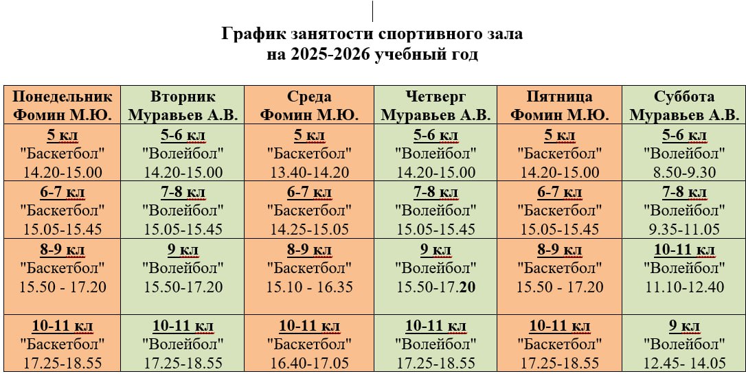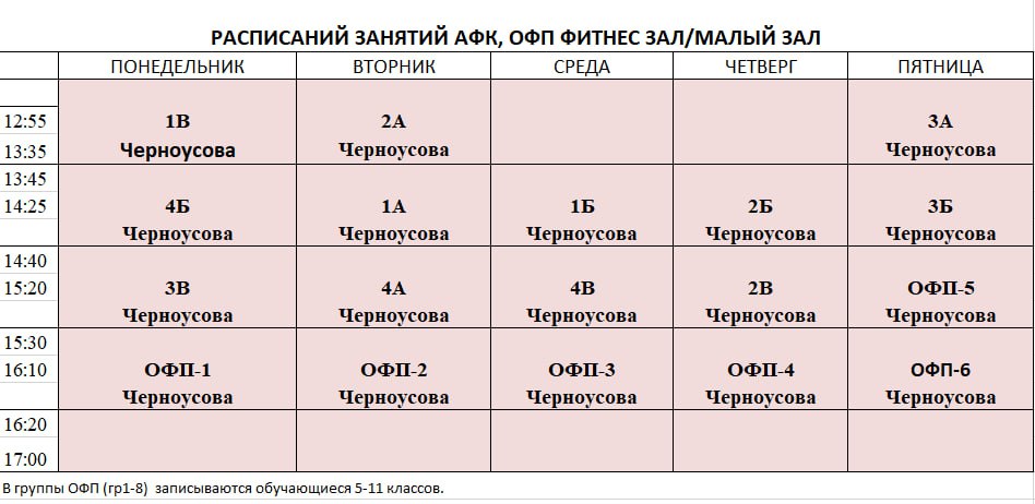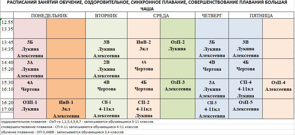 Расписание занятий в системе дополнительного образования и внеурочной деятельности: